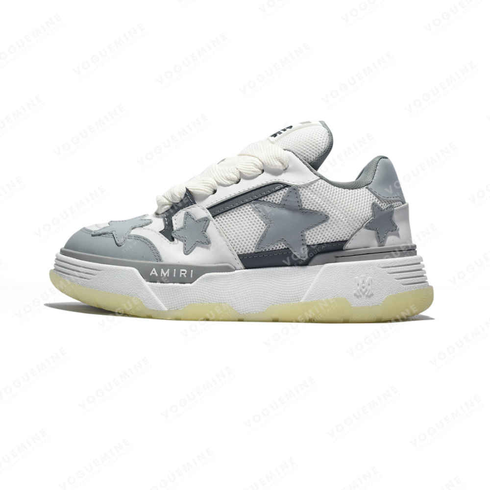 Vogue Mine's Amiri Grey Premium Quality Sneakers combine luxurious craftsmanship with urban flair. Crafted from premium materials, they exude sophistication and durability. With a sleek grey design accented by subtle details, they seamlessly blend style and comfort, making them a must-have for the fashion-conscious individual seeking timeless elegance in footwear.