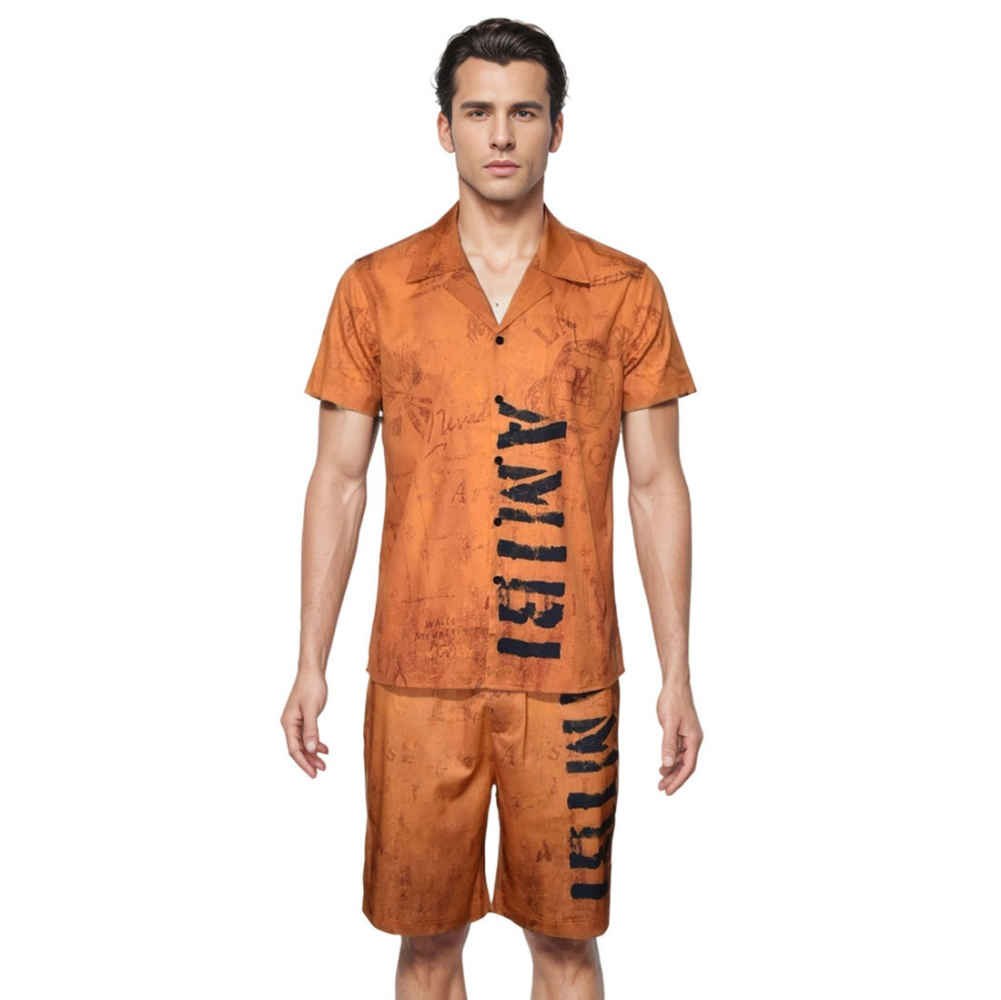 The Amiri Orange Premium Men's Shirt & Shorts Combo from Vogue Mine will elevate your look. This colorful set has a traditional fit and high-quality fabric that guarantees comfort and longevity. For men who are fashion forward, the vibrant orange color and elegant design make it a must. Ideal for elegant parties or carefree excursions.