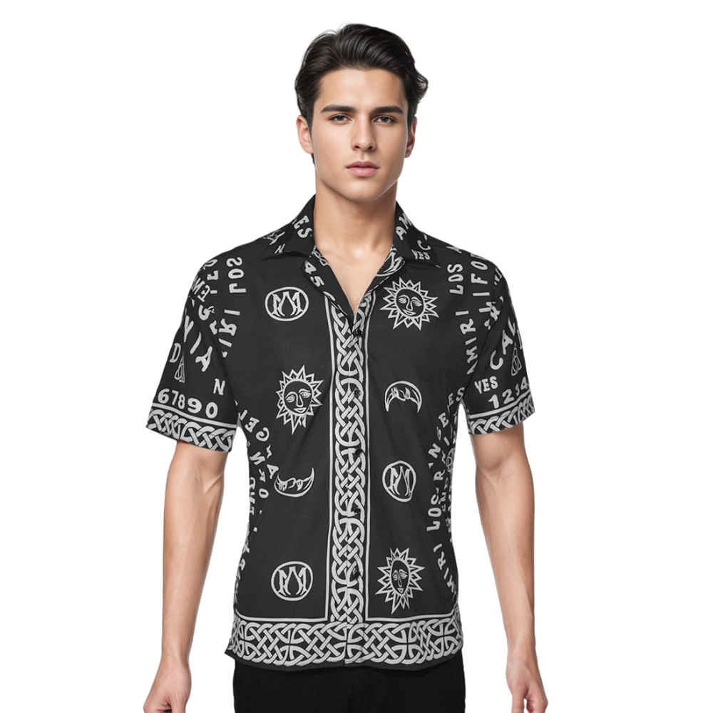 This Amiri Ouija Board-Print Bowling Shirt is a must-have for fans of both fashion and the supernatural. Constructed with premium materials, this shirt features an all-over Ouija board print that adds a unique and edgy touch to any outfit. With its sleek design and quality craftsmanship, this shirt is sure to turn heads and make a statement.