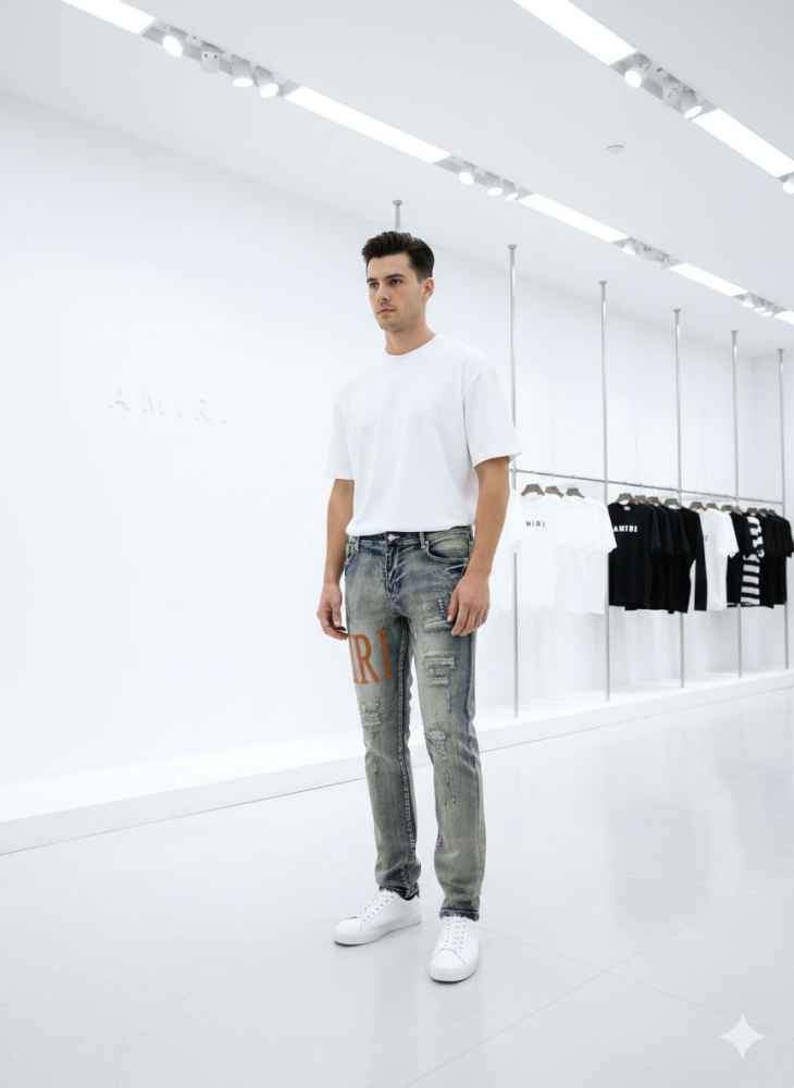 Vogue Mine's Amiri Premium Quality Denim Jeans embody timeless style and superior craftsmanship. Made from the finest denim, they offer unparalleled comfort and durability. With meticulous attention to detail, these jeans feature stylish cuts and finishes, elevating any wardrobe with a perfect blend of luxury and versatility.