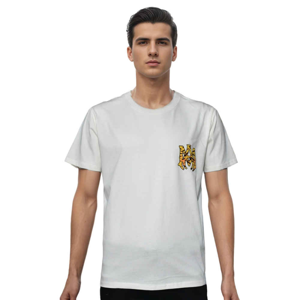 Elevate your style with the Amiri Premium Bandana Logo T-shirt from Vogue Mine. Crafted from soft, high-quality fabric, this iconic tee features a distinctive bandana print logo, exuding effortless cool. Perfect for any casual outing or layering under a jacket, it's a must-have for trendsetters seeking comfort and fashion-forward flair.