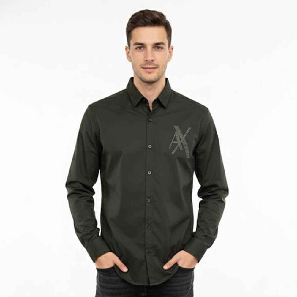 This shirt combines style and comfort, making it perfect for leisurely, relaxing days. Made from stretch cotton, it features long sleeves, ARMANI EXCHANGE latest logo design at back.