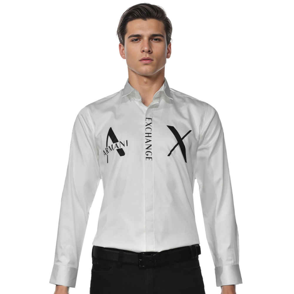 Elevate your wardrobe with the Armani Exchange Logo Print White Premium Shirt from Vogue Mine. Crafted for sophistication, this shirt features the iconic Armani logo, ensuring a stylish yet timeless appeal. Made from premium materials, it guarantees comfort and durability. Perfect for both casual and formal occasions, it's a must-have for the modern, fashion-forward individual.