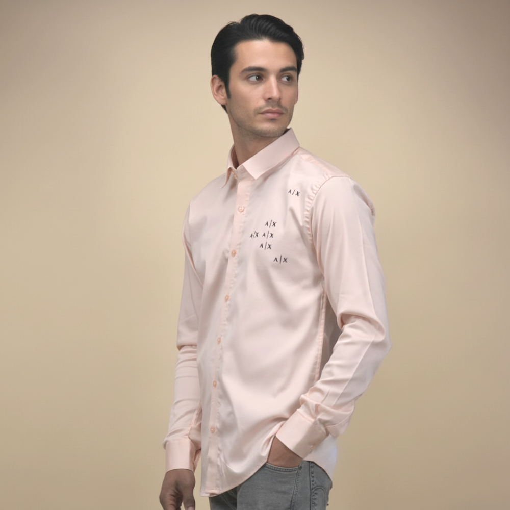 Vogue Mine offers a sophisticated Armani Exchange Peach Premium Quality Shirt, exuding elegance and style. Crafted with precision, its superior-quality fabric ensures comfort and durability. Perfect for both casual and formal occasions, this shirt elevates your wardrobe with timeless sophistication and effortless charm. Experience luxury with every wear.
