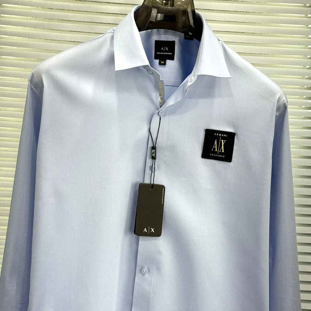 Buy Armani Exchange Sky Blue Premium Quality Cotton Shirt| Vogue Mine