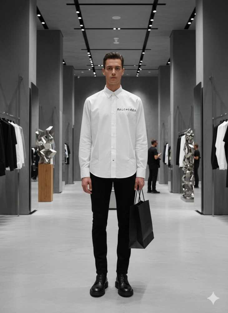 Crafted from premium-quality materials, the Balenciaga White Designer Shirt for men exudes sophistication and luxury. This stylish shirt, designed with precision and attention to detail, offers a comfortable and sleek fit for any occasion. Elevate your wardrobe with this timeless and high-quality piece from Balenciaga.