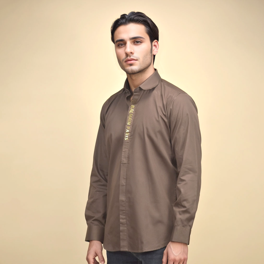 The Balmain Brown Premium Luxury Cotton Shirt from Vogue Mine will elevate your outfit. This shirt, which is made from the best cotton, is incredibly sophisticated and comfortable. Its exquisite tailoring and deep brown color make it a classic piece for any combination. With this magnificent item from Balmain, you may live the life of luxury and style.