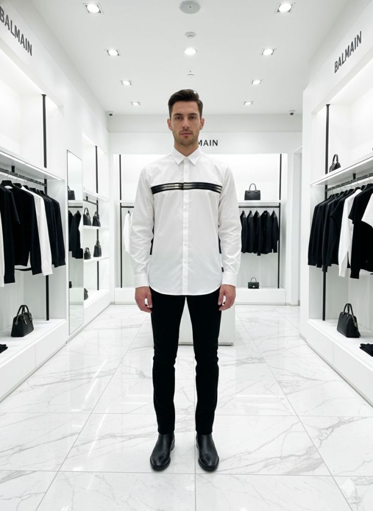 Elevate your wardrobe with the Premium Shirt from Vogue Mine. Made with the finest quality cotton, this shirt features intricate Balmain embroidery that adds a touch of luxury to any outfit. Perfect for both casual and formal occasions, this shirt is a must-have for any fashion-forward individual.
