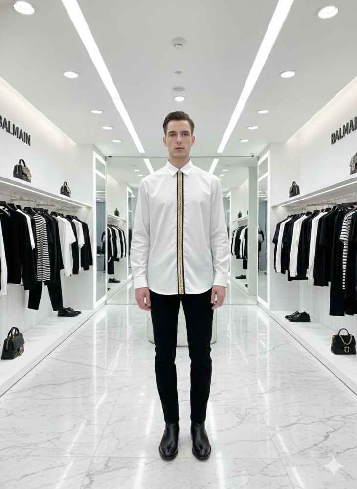 Elevate your wardrobe with the Premium Shirt from Vogue Mine. Made with the finest quality cotton, this shirt features intricate Balmain embroidery that adds a touch of luxury to any outfit. Perfect for both casual and formal occasions, this shirt is a must-have for any fashion-forward individual.