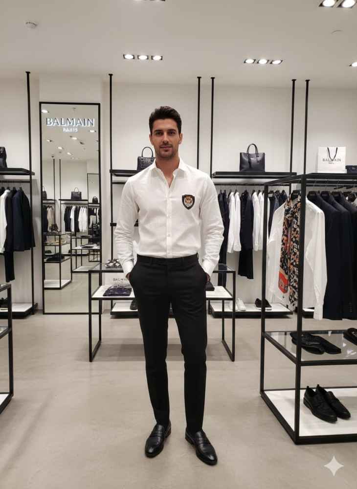 Elevate your wardrobe with the Premium Shirt from Vogue Mine. Made with the finest quality cotton, this shirt features intricate Balmain embroidery that adds a touch of luxury to any outfit. Perfect for both casual and formal occasions, this shirt is a must-have for any fashion-forward individual.