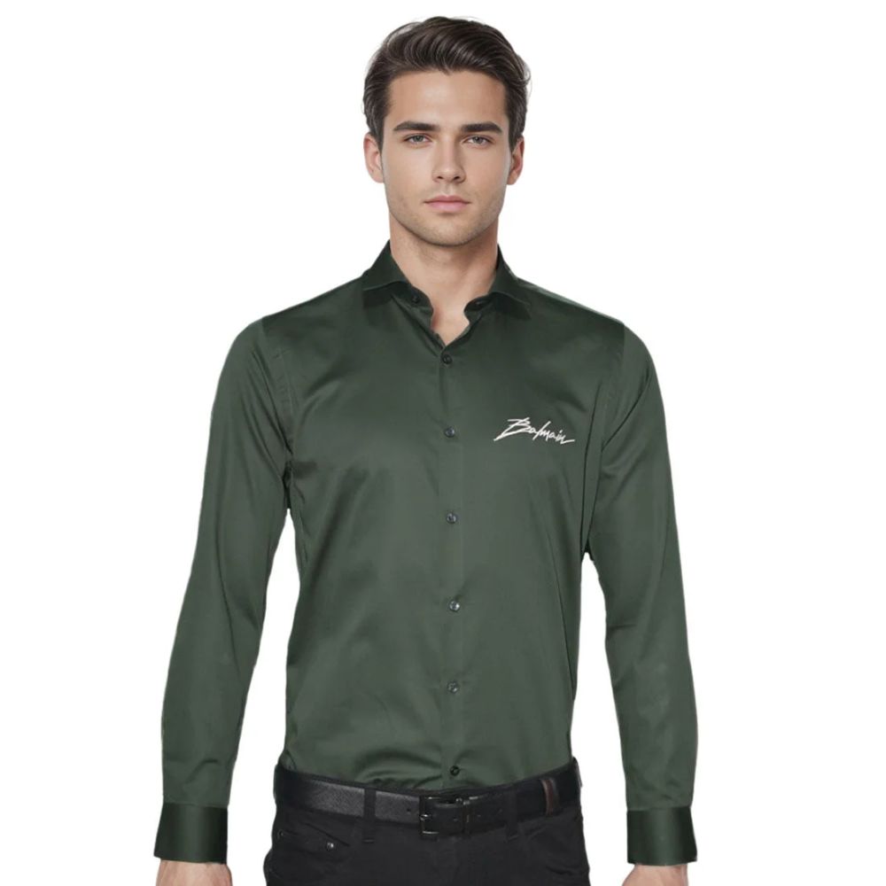 Upgrade your formal attire with the Balmain Green Premium Quality Slim Fit Formal Men's Shirt. Made with high-quality materials, this shirt offers a sleek and sophisticated look. The slim fit design provides a modern and tailored look, perfect for any formal occasion. Elevate your style with this premium shirt.