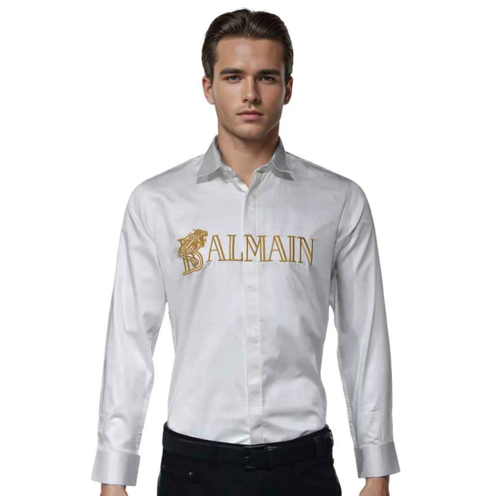 Experience premium quality and style with the Balmain White Long Sleeve Shirt. Made for men, this expertly crafted shirt offers a sleek and professional look. Its long sleeves provide versatility for any occasion. Elevate your wardrobe with this must-have piece.