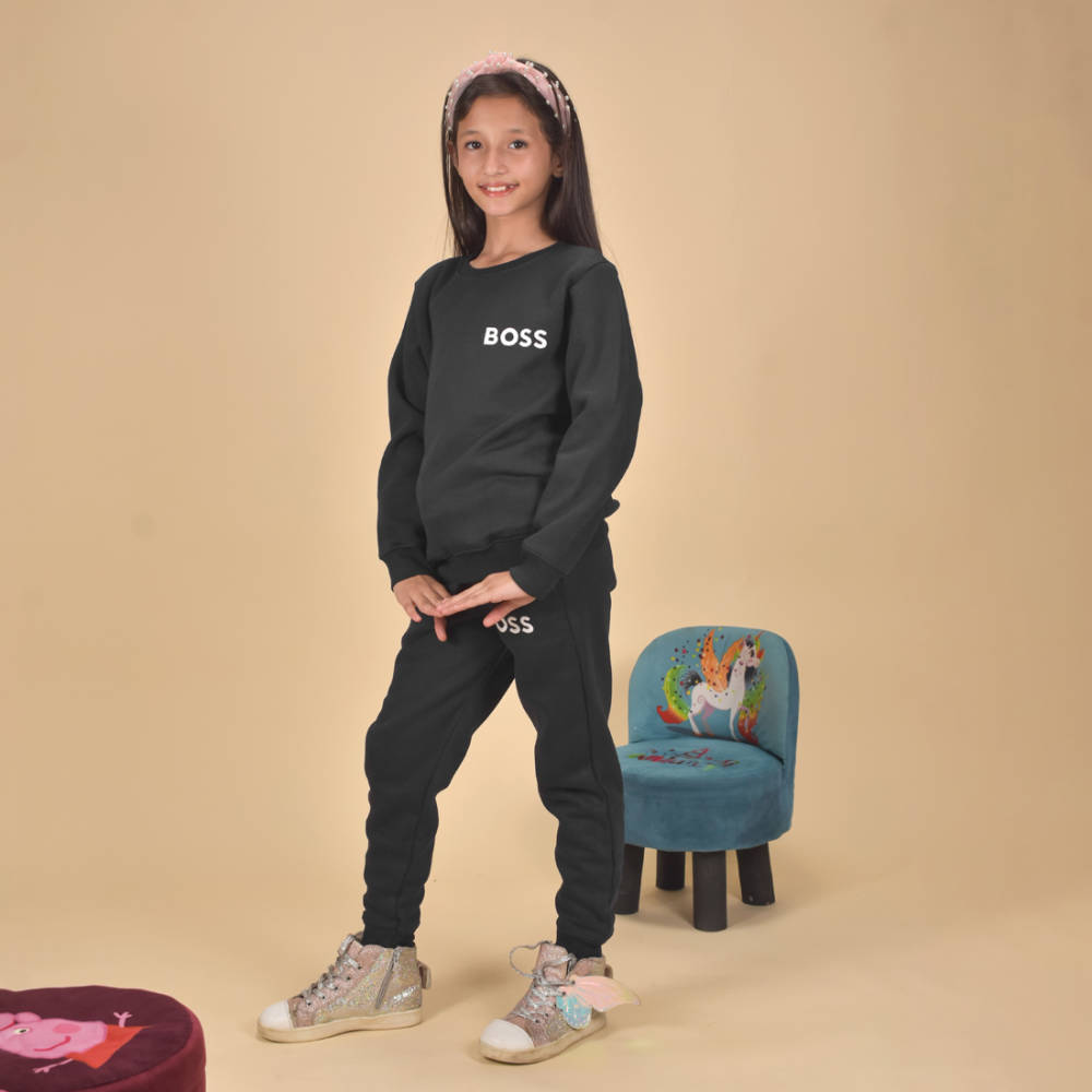 Crafted with premium quality, the Boss Black Track Suit is the perfect addition to your kid's wardrobe. Made with high-quality materials, this tracksuit provides comfort and durability for your active child. Keep them stylish and ready for any activity with this versatile and fashionable tracksuit.