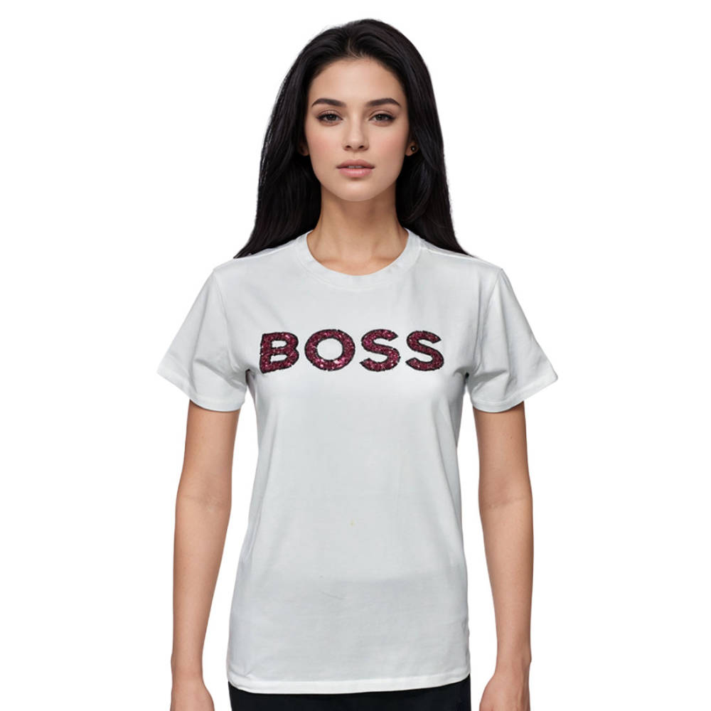 The BOSS White Premium Quality Women T-shirt is a must-have for any fashion-forward individual. Its high-quality fabric provides superior comfort and durability, while its stylish design exudes confidence and sophistication. Elevate your wardrobe and make a statement with this premium t-shirt.