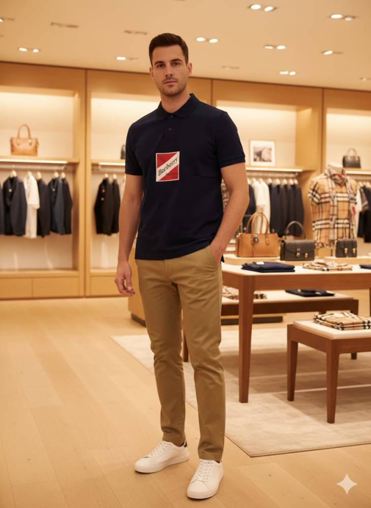 iscover elegance with Premium Polo T-shirt from Vogue Mine. This timeless piece features a sleek black finish, highlighted by Burberry's iconic embroidered logo. Crafted from premium materials, it ensures superior comfort and a perfect fit. Elevate your wardrobe with this luxurious, versatile polo, ideal for any sophisticated, modern look.