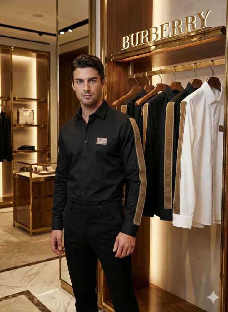 Ⓡ🅢 BURBERRY ORIGINAL COTTON LYCRA PREMIUM SHIRTS IN STOCK