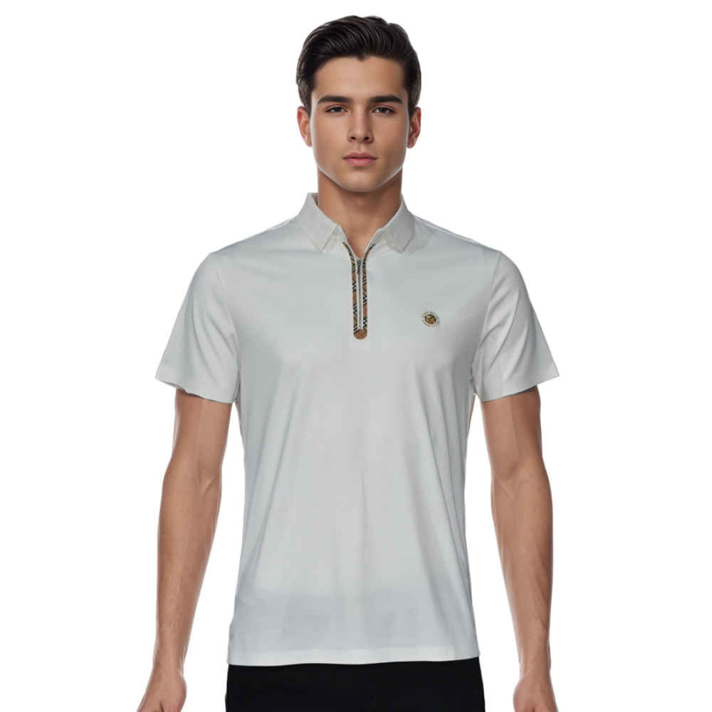 Vogue Mine Burberry White Premium Embossed Logo T-Shirt. This polo, which was made with amazing attention to detail, has a classy print that exudes classic elegance. It is ideal for every occasion and is made of high-quality fabric for exceptional comfort and durability. With this opulent item, reinvent your wardrobe necessities and make a statement.