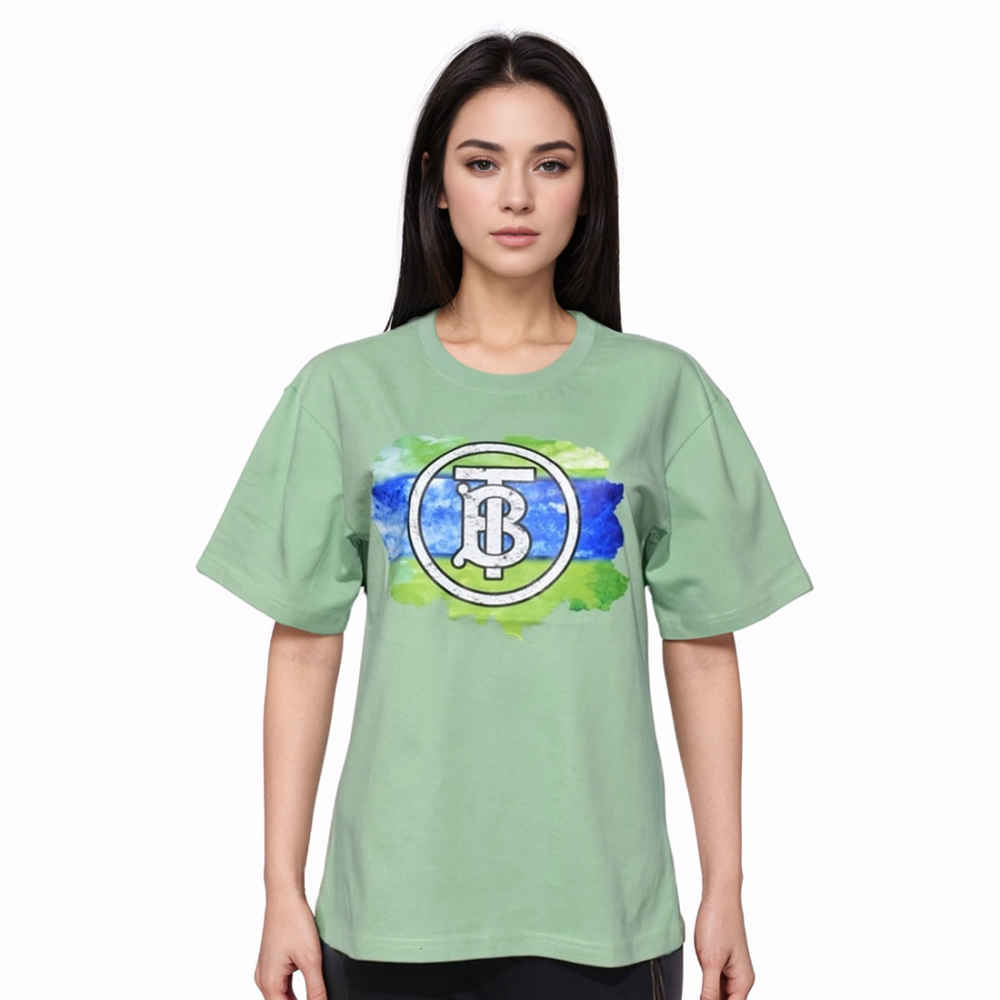 The Burberry Green Premium Women Oversized T-shirt from Vogue Mine will elevate your look. This roomy t-shirt blends comfort and classic style thanks to its soft, breathable cotton construction. Burberry's subdued branding and vivid green hue combine to make a striking impression. Perfect for laid-back days or chic evenings, this shirt is an essential piece.