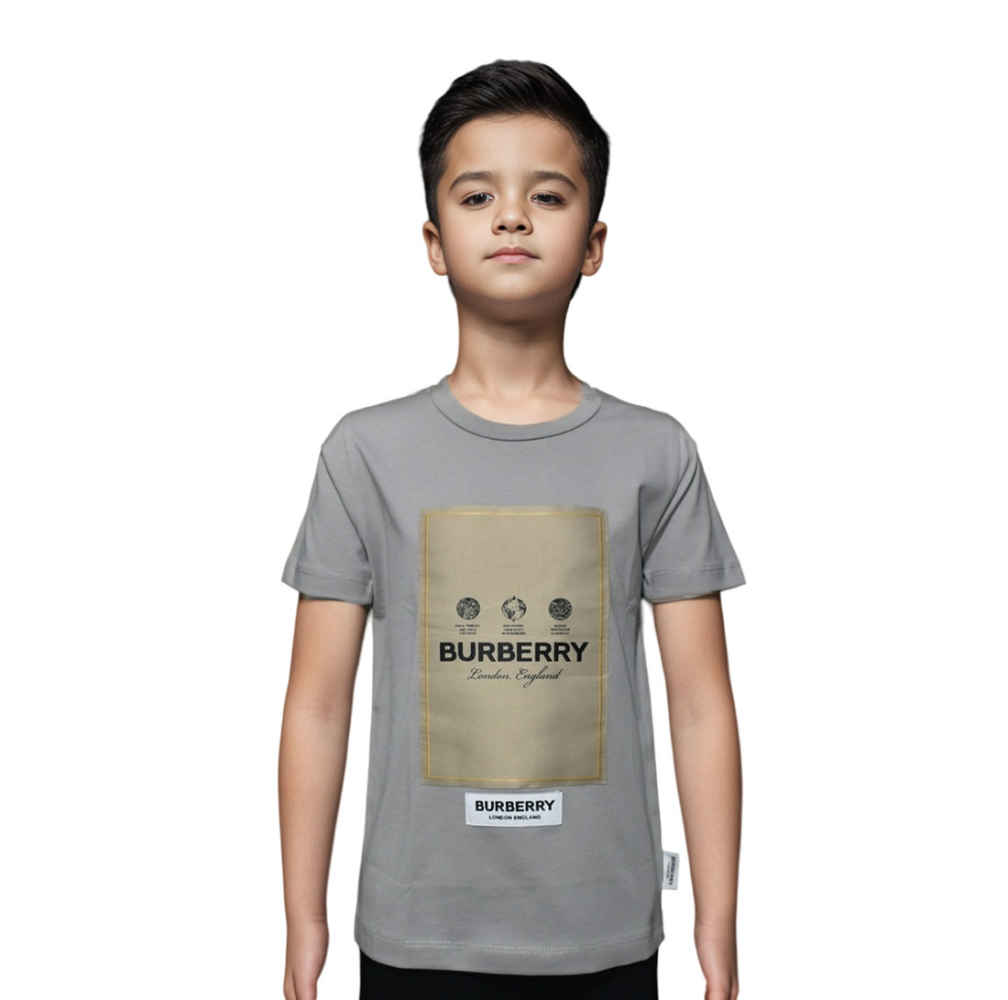 Introducing the Burberry Label Print Grey Premium Kids T-shirt at Vogue Mine. This soft, durable tee features the iconic Burberry label print, ensuring your little one stands out in style. Crafted from premium cotton, it's perfect for everyday wear and easy care. Elevate your child's wardrobe with timeless sophistication.
