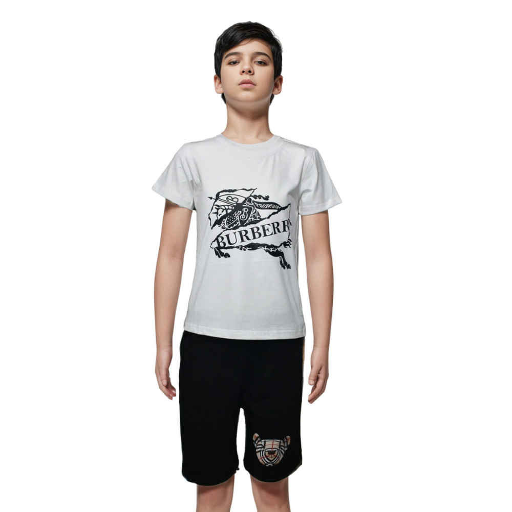 Dress your little trendsetter in timeless style with the Burberry Logo Print White Premium Kids Co-ord Set from Vogue Mine. Crafted for comfort and designed to impress, this set blends luxury with playfulness. Featuring Burberry's iconic logo print, it promises a chic statement for any occasion. Perfect for fashion-forward youngsters who appreciate quality and flair.