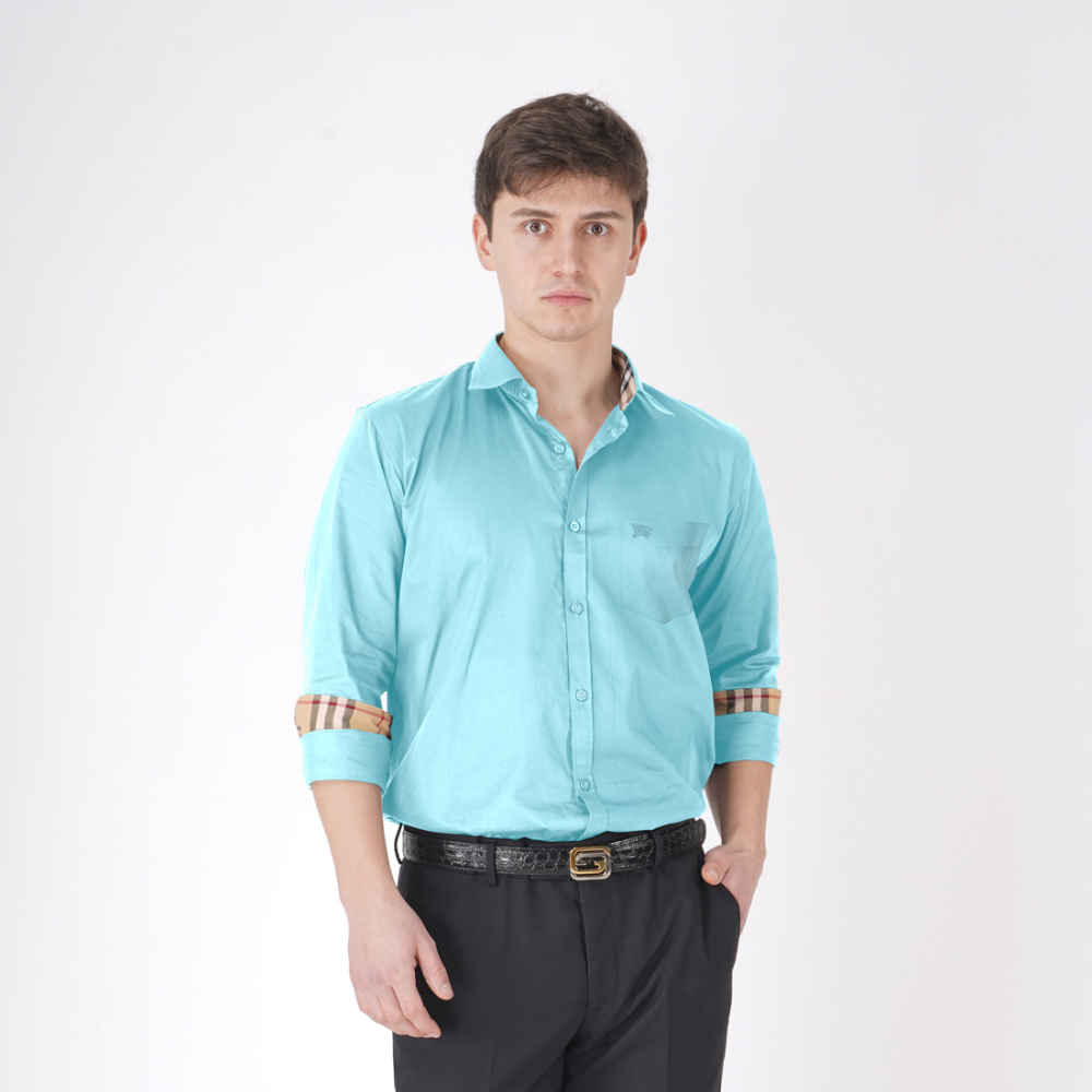 Indulge in sophistication with our Burberry Mint Blue Premium Quality Shirt from Vogue Mine. Crafted with exquisite attention to detail, this shirt exudes elegance and style. Elevate your wardrobe with its impeccable design, perfect for both formal occasions and casual outings. Experience luxury redefined.