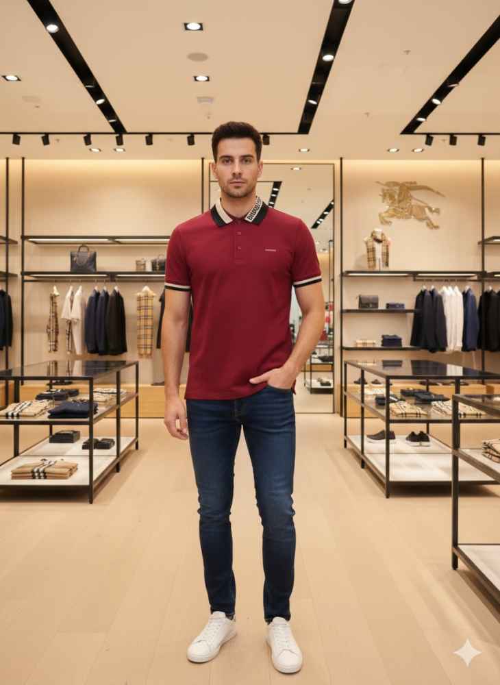 Discover elegance with Premium Polo T-shirt from Vogue Mine. This timeless piece features a sleek black finish, highlighted by Burberry's iconic embroidered logo. Crafted from premium materials, it ensures superior comfort and a perfect fit. Elevate your wardrobe with this luxurious, versatile polo, ideal for any sophisticated, modern look.