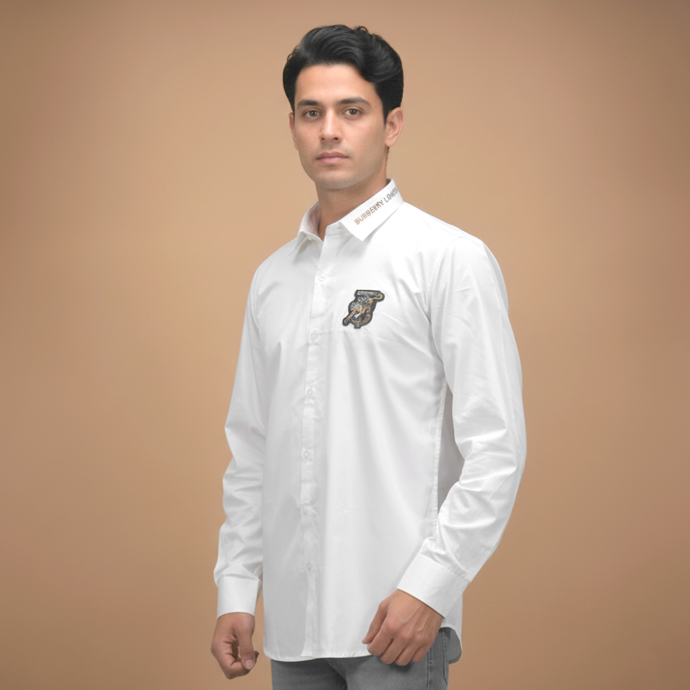 Elevate your style with the Burberry TB Tiger Embroidered White Premium Shirt from Vogue Mine. This luxurious shirt features intricate tiger embroidery and Burberry's iconic TB monogram, blending timeless elegance with modern flair. Made from high-quality materials, it offers unparalleled comfort and a tailored fit, making it the perfect choice for those who appreciate sophisticated fashion.