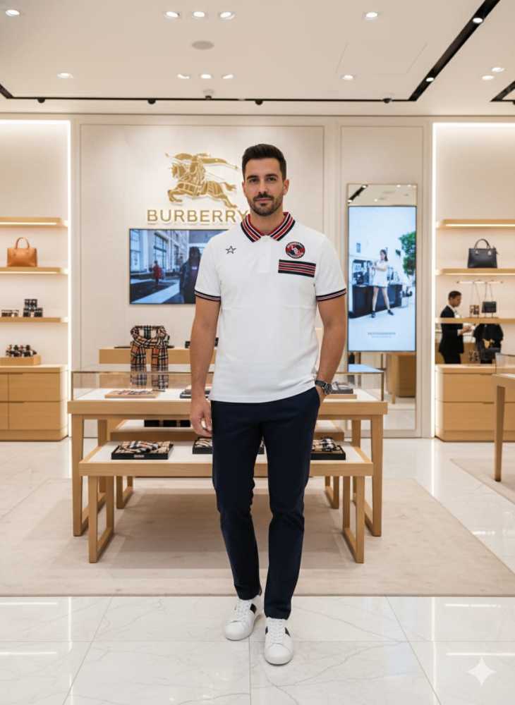 Discover elegance with Premium Polo T-shirt from Vogue Mine. This timeless piece features a sleek black finish, highlighted by Burberry's iconic embroidered logo. Crafted from premium materials, it ensures superior comfort and a perfect fit. Elevate your wardrobe with this luxurious, versatile polo, ideal for any sophisticated, modern look.