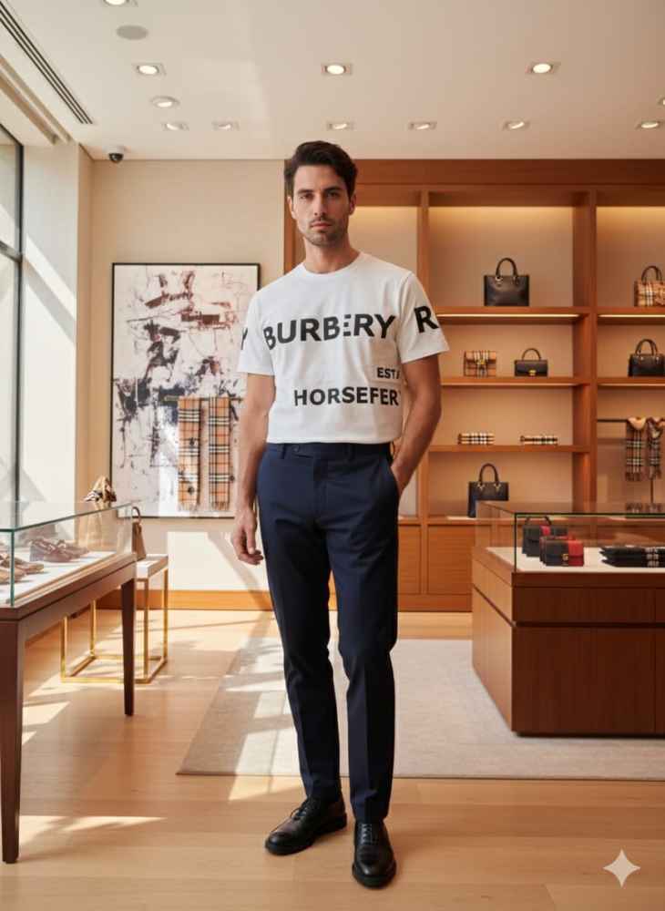 iscover elegance with Premium Polo T-shirt from Vogue Mine. This timeless piece features a sleek black finish, highlighted by Burberry's iconic embroidered logo. Crafted from premium materials, it ensures superior comfort and a perfect fit. Elevate your wardrobe with this luxurious, versatile polo, ideal for any sophisticated, modern look.