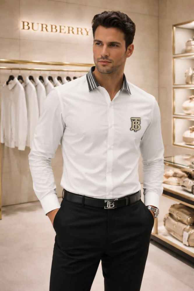 Ⓡ🅢 BURBERRY ORIGINAL COTTON LYCRA PREMIUM SHIRTS IN STOCK