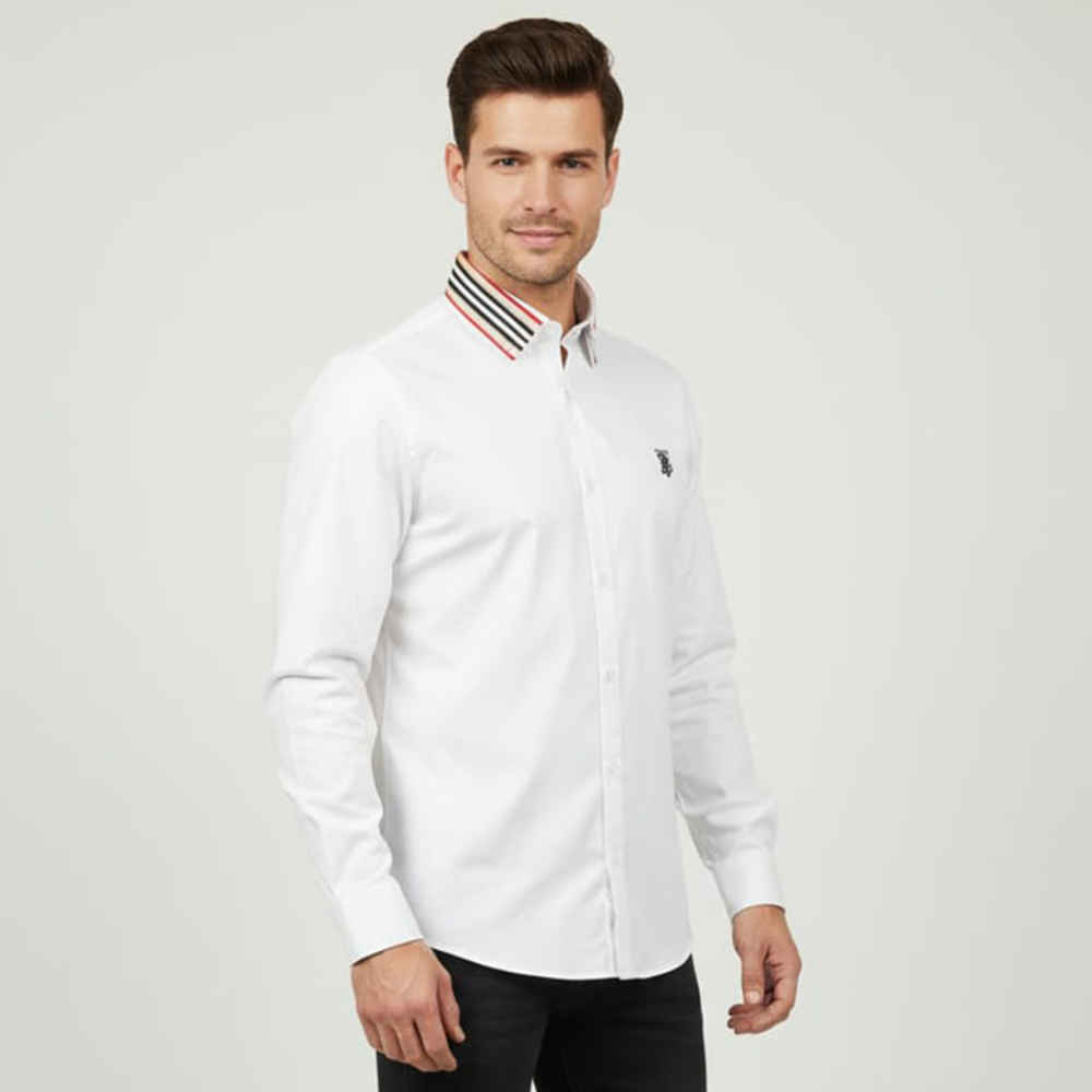 With premuim cotton satin fabric and Diffrent Front chest Brand logo TB Embo Work & Collar Brand Tape Matching Desiner shirt