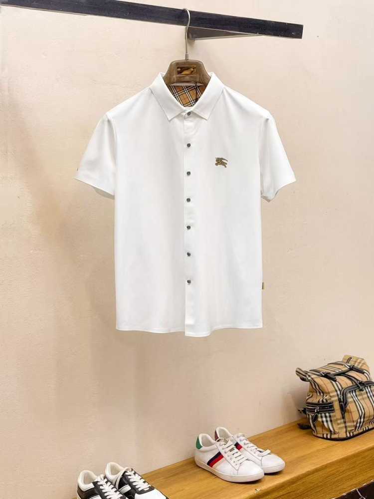 This Burberry short-sleeved shirt boasts superior quality and a bold, printed design for the modern man. Elevate your style with this premium shirt, expertly crafted with top-of-the-line materials. Stay cool and comfortable while making a statement. Perfect for any occasion.