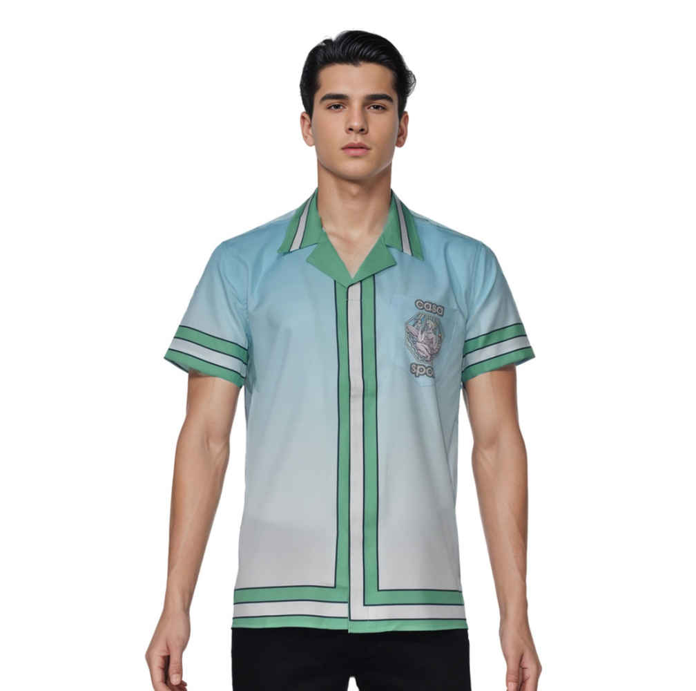 This premium quality shirt from Casablanca offers a sleek and sophisticated look that any man would appreciate. Crafted with high-quality materials, it provides both comfort and style. With its sky-blue color, it is perfect for any occasion and will surely elevate any outfit. Upgrade your wardrobe with this must-have shirt.