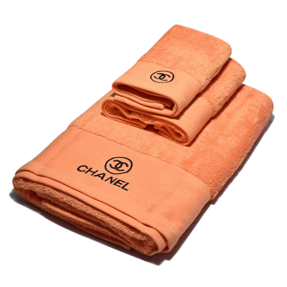 The Chanel Embroidered Logo Orange Premium Towel Set from Vogue Mine will enhance your bathroom experience. The stunning Chanel embroidery on this opulent set of three towels lends a sense of sophistication and elegance. Made from premium, incredibly soft fabric, these towels provide outstanding comfort and absorbency. With the help of this essential designer collection, turn your bathroom into a stylish haven.