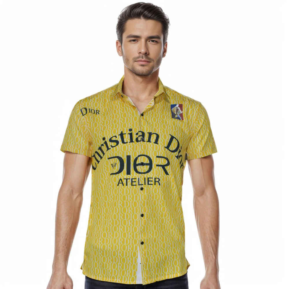This Christian Dior Yellow Printed Half Sleeve Shirt offers premium quality and a stylish design for men. Crafted with care and attention to detail, this shirt is perfect for any occasion. Featuring a unique print and a comfortable fit, it will elevate any outfit and make a statement.