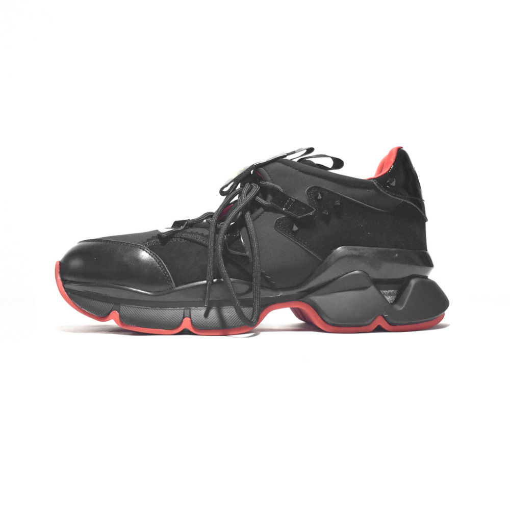 These Christian Louboutin Black Premium Quality Sneakers are crafted of premium black leather with iconic red soles. The luxurious, handmade construction ensures superior comfort and quality for a fashionable look.