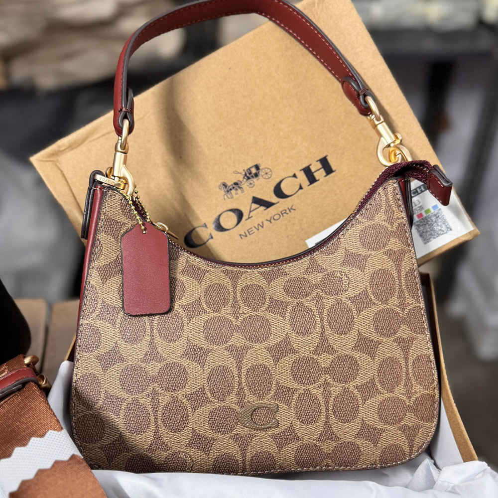 COACH C LOGO SMALL HOBO BAG WITH BROAD LONG STRAP AND SMALL LEATHER STRAP