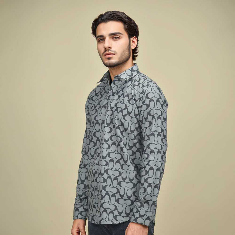 Elevate your wardrobe with the Coach Monogram Printed Grey Premium Shirt from Vogue Mine. Crafted from high-quality fabric, this shirt features the iconic Coach monogram in a sleek grey print. Perfect for any occasion, its timeless design and premium feel make it a must-have for the discerning fashion enthusiast. Experience luxury and style with this statement piece.