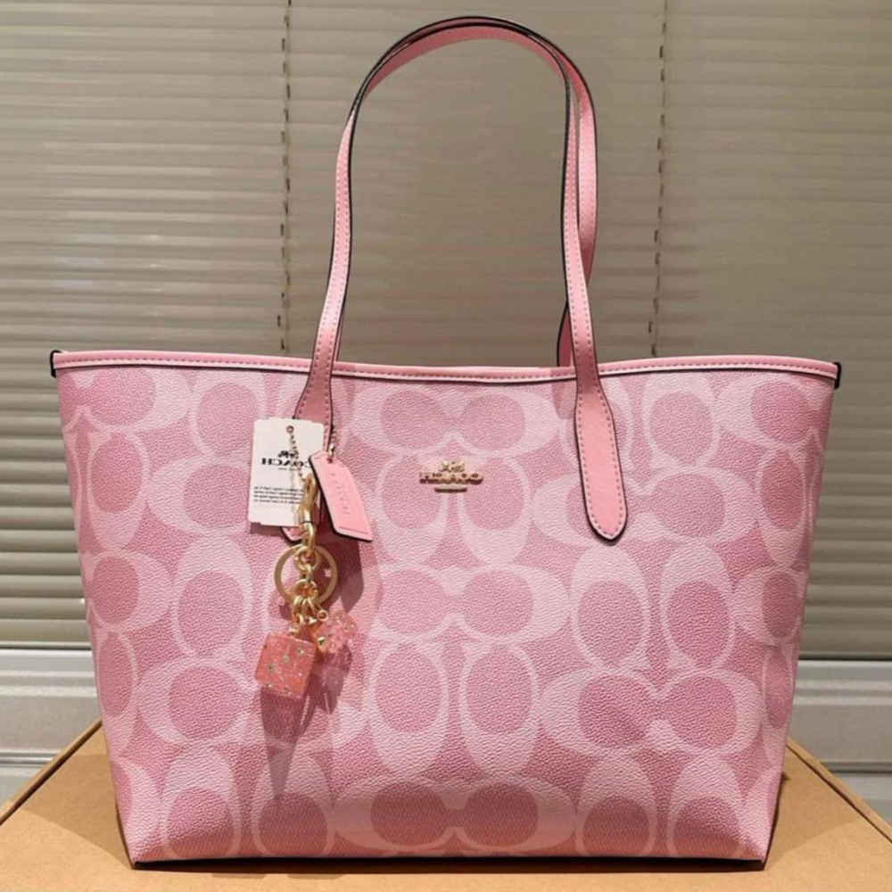 COACH PINK CARRYALL CITY TOTE {{RANDOM CHARM AVAILABLE,CHOOSE ONE AMONG DICE , CHERRY , C LOGO ,TABBY ,HEART}}