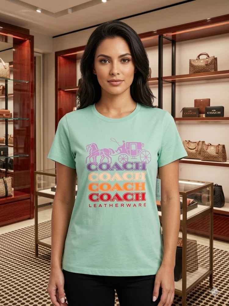 Introducing the Coach Premium Quality Women's T-shirt, designed specifically for the modern woman. Made with only the highest quality materials, this t-shirt offers unparalleled comfort and durability. Perfect for any occasion, this t-shirt is a must-have staple for every woman's wardrobe. Upgrade your style today with Celine.