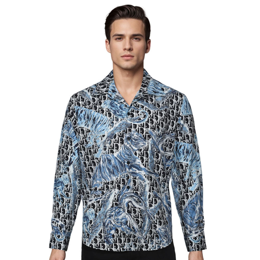 Introducing the Dior Black & Blue Premium Quality Shirt for men. Made with the highest quality materials, this shirt exudes style and sophistication. Perfect for any occasion, this premium shirt will elevate your wardrobe and make a lasting impression. Experience the luxury of Dior