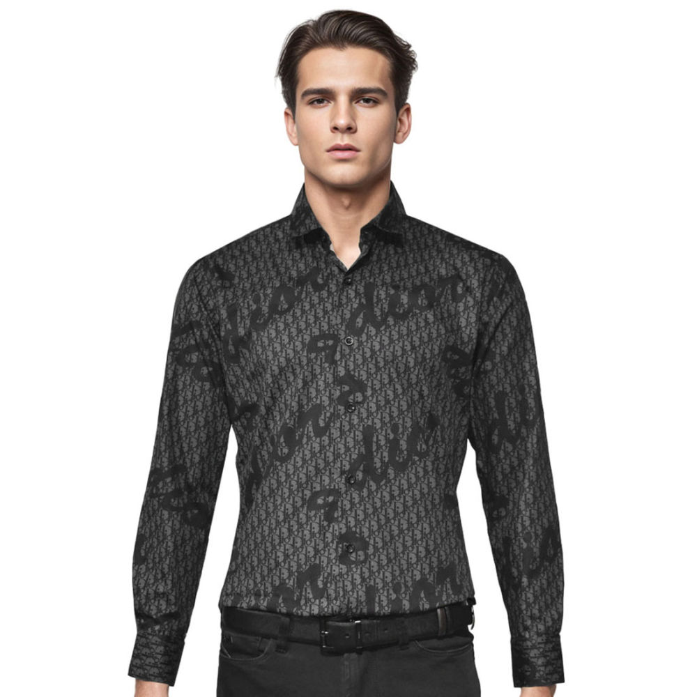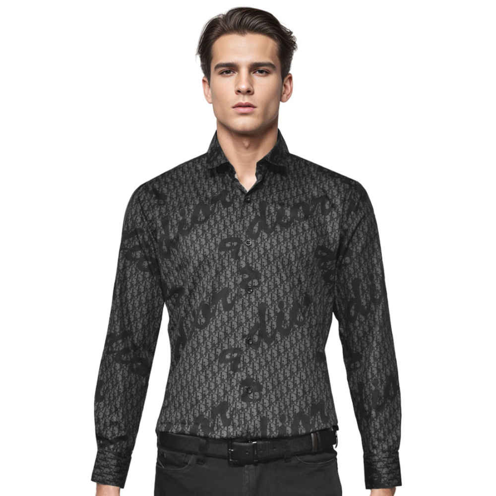Stand out from the crowd in the Dior Printed Black Premium Cotton Shirt by Vogue Mine. This versatile piece can be dressed up or down, making it a must-have addition to your collection. With its sleek design and premium cotton fabric, you'll feel confident and comfortable all day long.