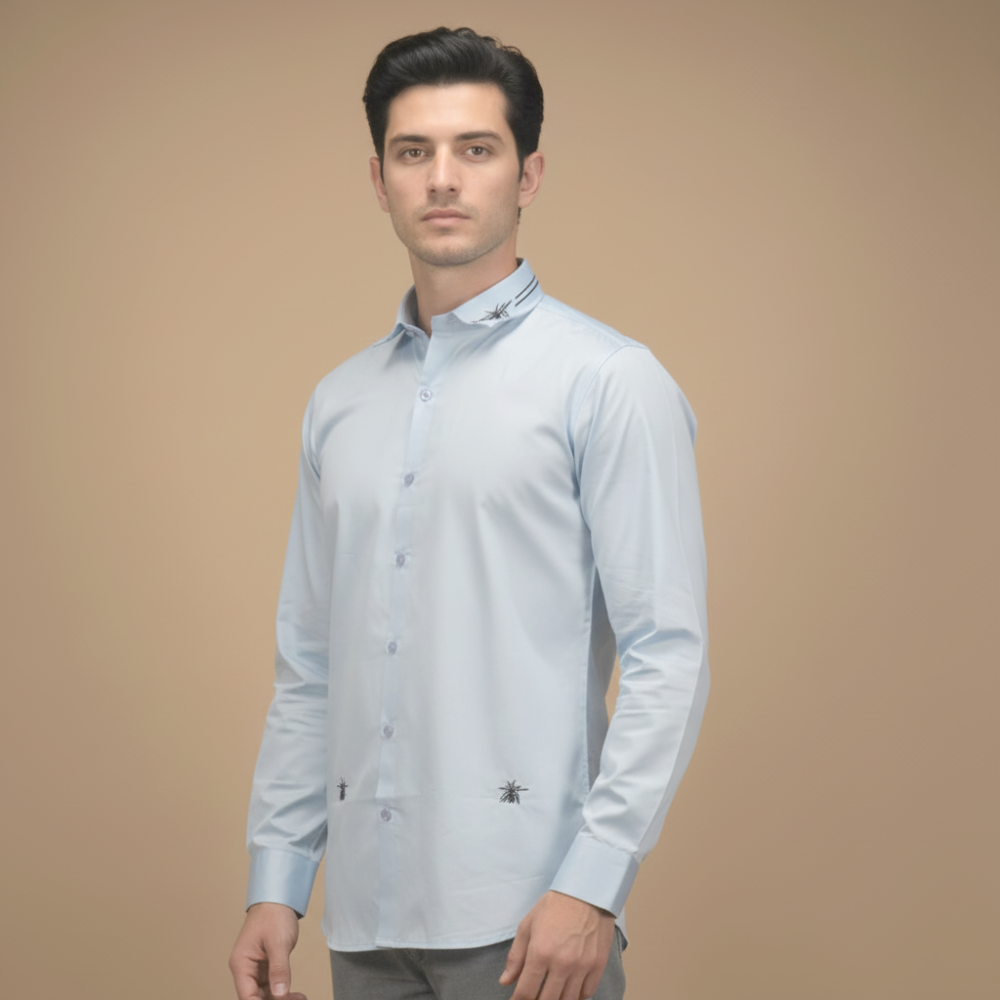 The Dior Spider Embroidery Print Sky Blue Premium Shirt from Vogue Mine will elevate your outfit. This designer item radiates elegance and sophistication with its elaborate spider embroidery on a plush sky-blue cloth. Made from high-quality fabrics, it provides the ideal balance of style and comfort, making it a must-have piece for your wardrobe. Wear it with confidence—it's ideal for every situation!