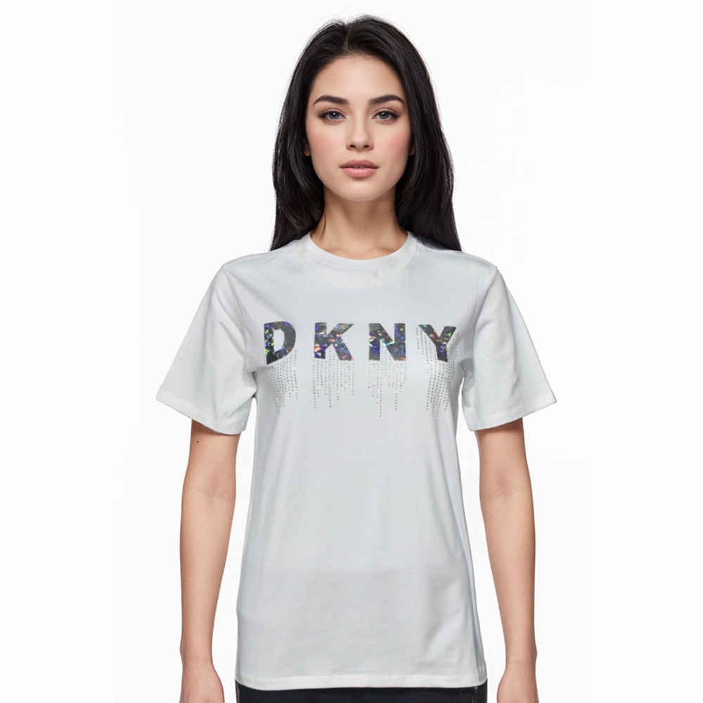 This DKNY White Premium Quality Women T-shirt offers a sleek and stylish design. Crafted with high-quality materials, it is perfect for any occasion. The soft, breathable fabric provides all-day comfort, while the feminine silhouette flatters any body type. Upgrade your wardrobe with this must-have essential.