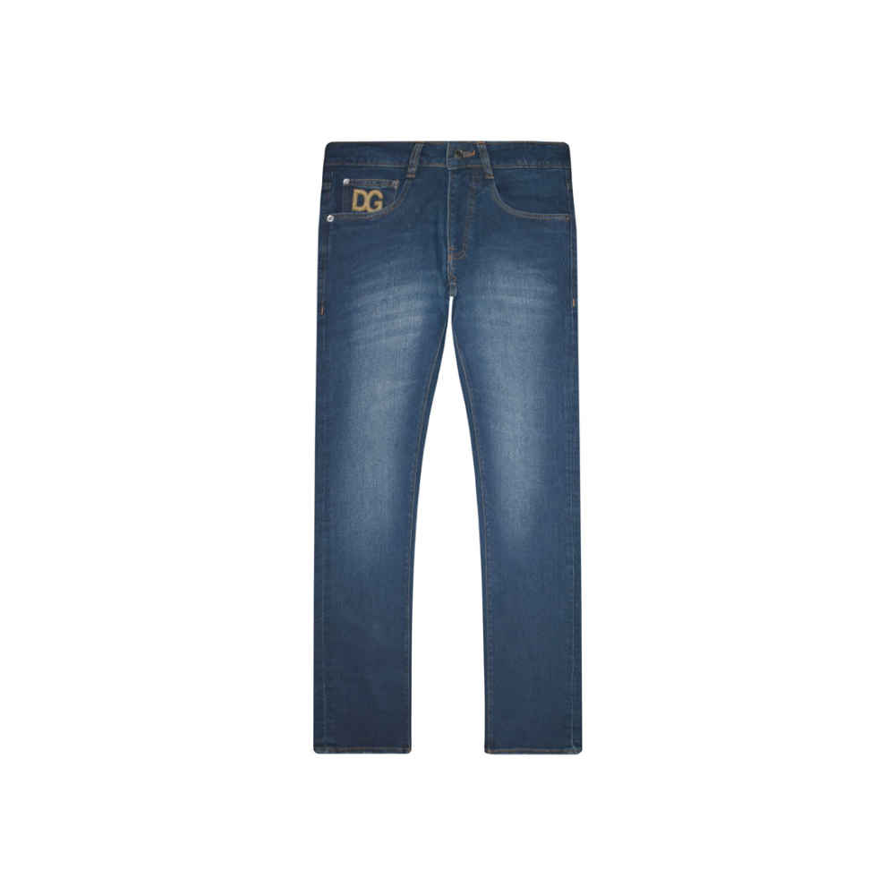 Dolce & Gabbana's Blue Embossed Pocket Logo Jeans, as featured in Vogue Mine, epitomize luxury and style. Crafted with precision, the jeans boast intricate embossed detailing and the iconic D&G logo on the pockets. These jeans are a statement piece, seamlessly blending sophistication with contemporary fashion for the modern trendsetter.
