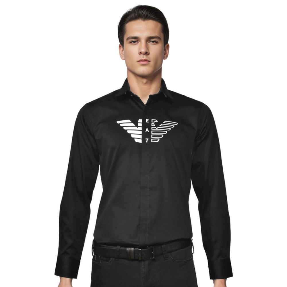 Emporio Armani Black Premium Luxury Shirt from Vogue Mine. Crafted with precision, this shirt offers unparalleled sophistication and comfort. Perfect for any occasion, its sleek black design exudes elegance and confidence. Indulge in the ultimate fashion statement with this exquisite piece from Emporio Armani. Shop now and redefine your wardrobe with luxury.