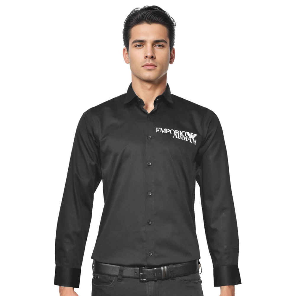 Elevate your wardrobe with the Emporio Armani Logo Print Black Premium Shirt from Vogue Mine. Crafted from high-quality fabric, this shirt features a sleek black design highlighted by the iconic Emporio Armani logo. Its modern fit and luxurious feel make it a must-have for the fashion-forward. Perfect for both casual and formal occasions, it exudes sophistication and style.