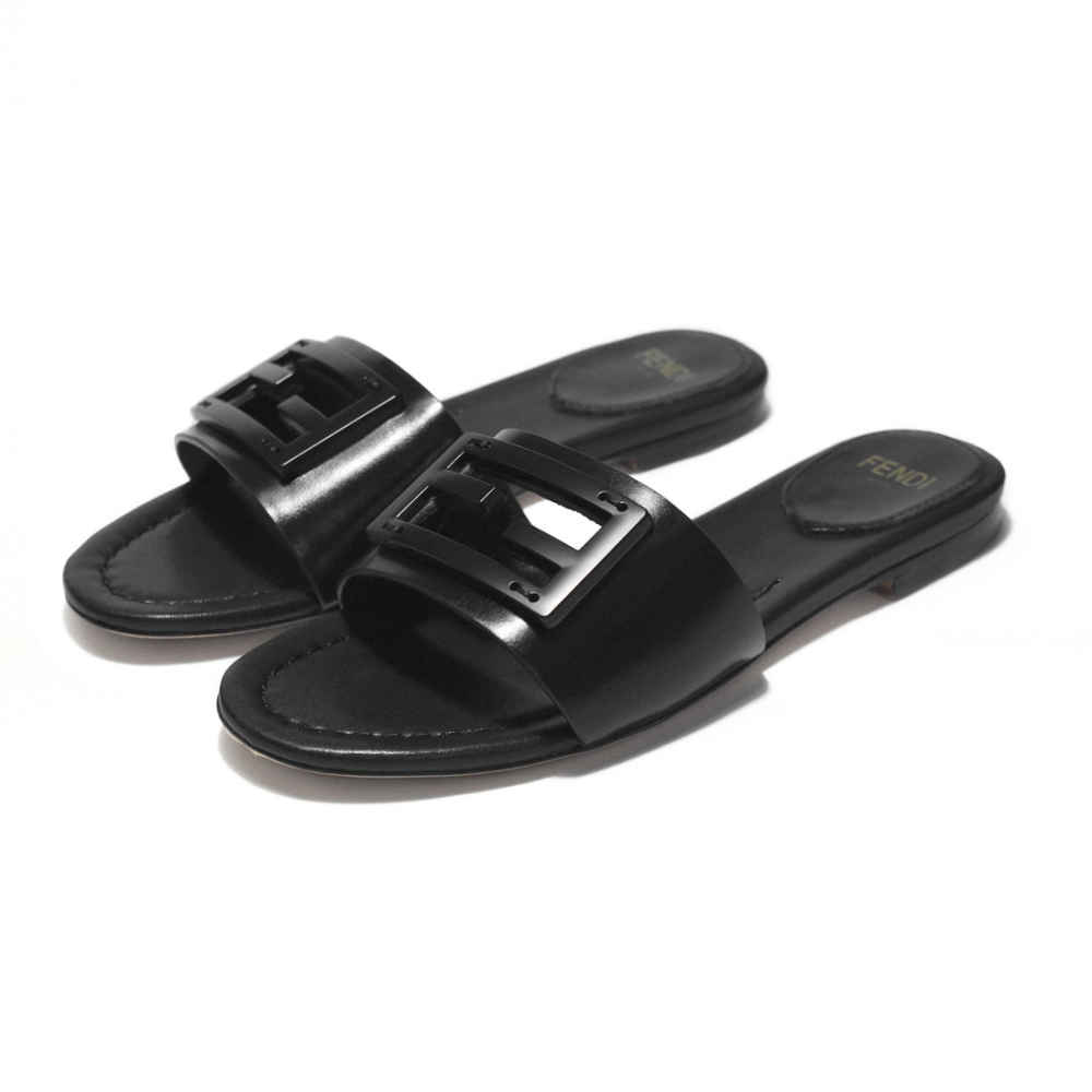 Step into luxury with the Fendi logo Black Premium Leather Flat Sandals from Vogue Mine. Crafted from supple, top-tier leather, these sandals offer a perfect blend of elegance and comfort. The iconic Fendi logo adds a touch of designer flair, making them an ideal choice for sophisticated style. Elevate your everyday look with this timeless, chic footwear essential.
