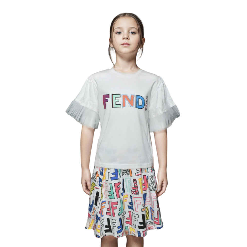 Step into sophistication with the Fendi Printed White Premium Girls Co-ord Set from Vogue Mine. Designed for the fashion-forward girl, this set exudes elegance with its iconic Fendi print. Crafted from high-quality materials, it offers both comfort and style. Perfect for creating effortlessly chic looks, this co-ord set is a must-have addition to any fashionista's wardrobe. Available exclusively at Vogue Mine.
