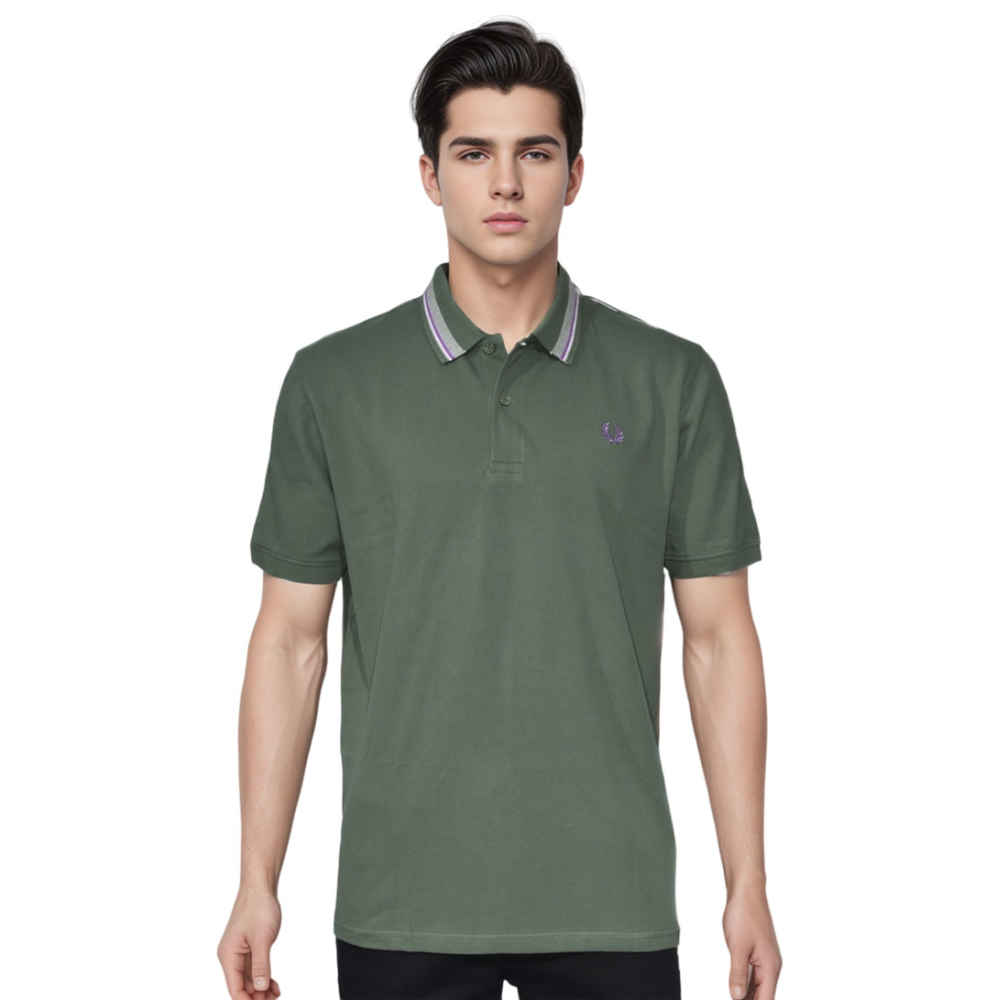 The Fred Perry Embroidered Logo Olive Premium T-shirt from Vogue Mine will elevate your look. This stylish olive-colored t-shirt, which is made of premium fabrics, has the classic Fred Perry emblem gently embroidered on the breast. It's a wardrobe essential that blends comfort and style, perfect for a sophisticated casual look.